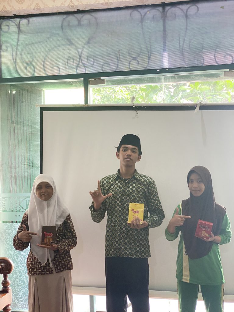 Foto bersama para pemenang lomba karya jurnalistik siswa, dengan Juara I Rovi’ah Lidia di sisi kiri, Juara II Rizki Ramadany di bagian tengah, dan Juara III Evi Dhohiroh Wa Bathinah di sisi kanan.