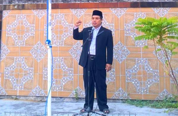 KH. M. Hasan Badri saat memberikan amanat di acara Upacara peringatan HUT ke-80 RI, Minggu, (17/8/2025). (dok istimewa)